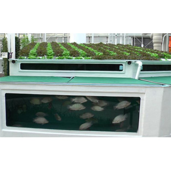 鱼菜共生系统可选择芹菜、生菜、空心菜等品种,利用泡沫浮板的模式种植。也可以加入部分石栽部分。用富含微量元素的植金石等材料对作物进行栽培。这些材料透水性好,不影响植物对水中氨、硝酸盐等的吸收,可以很好地固定植物,也可以作为生物填料使用。以利于有益菌如硝化细菌的繁殖。同时它们所含的微量元素在循环水养殖系统后期,水质酸化后,可以将一些微量元素缓慢释放到系统中, 这对系统中的动、植物都是有益的。还有些颗粒性滤料如珊瑚砂等,对系统水质的PH值有很强的调节缓冲作用。